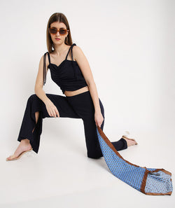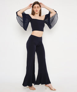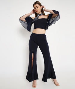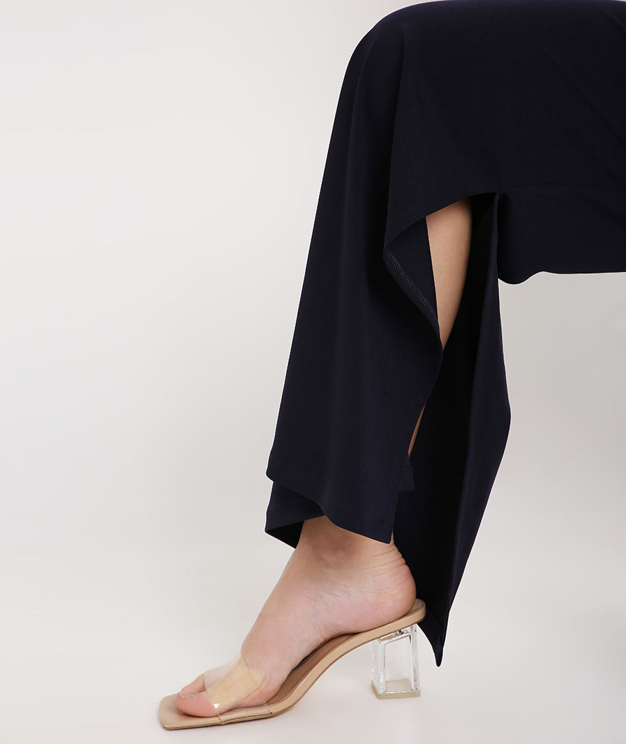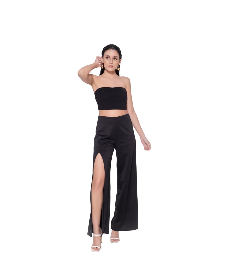 MARCEL & MAE Women's High-Waisted Wide-Leg Pants with Front Slit | Party & Evening Wear Trousers for Stylish Looks (US, Alpha, X-Small, Regular, Regular, Black)