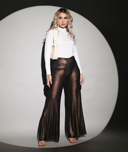 MARCEL & MAE Women's Satin Wide-Leg Pants | High-Waisted Flowy Trousers | Shimmer Finish for Party, Evening & Festive Wear (US, Alpha, X-Small, Regular, Regular, Black)