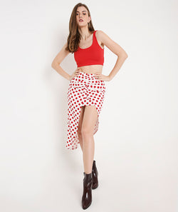 Orange Polka High Slit Skirt