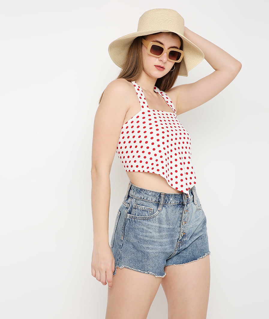 Red Polka Bandana Top with a TieUp