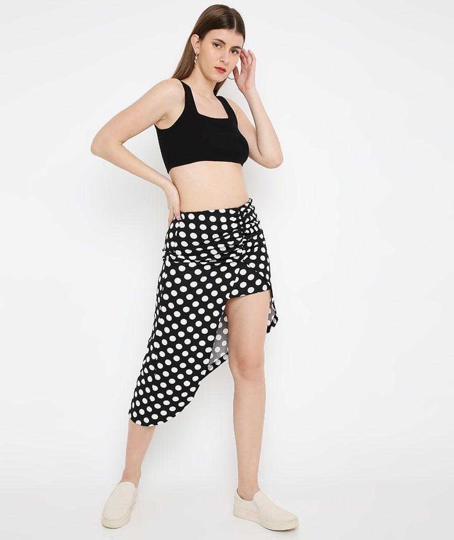 Navy Blue Polka High Slit Skirt